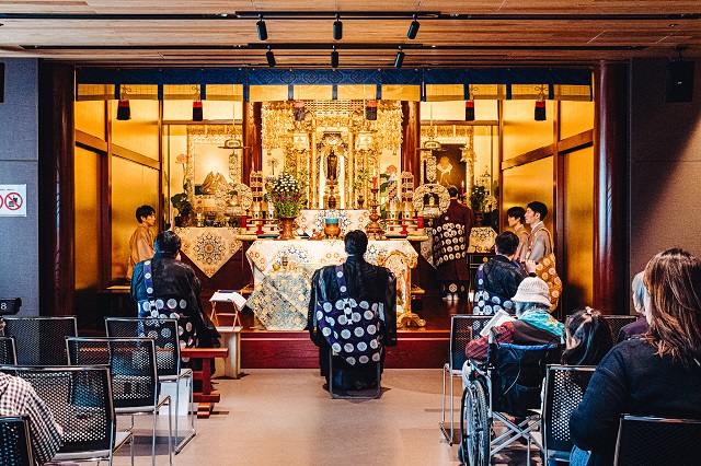 1階にカフェ、2階に本堂、3~9階が介護付き有料老人ホームという新しい形のお寺です。